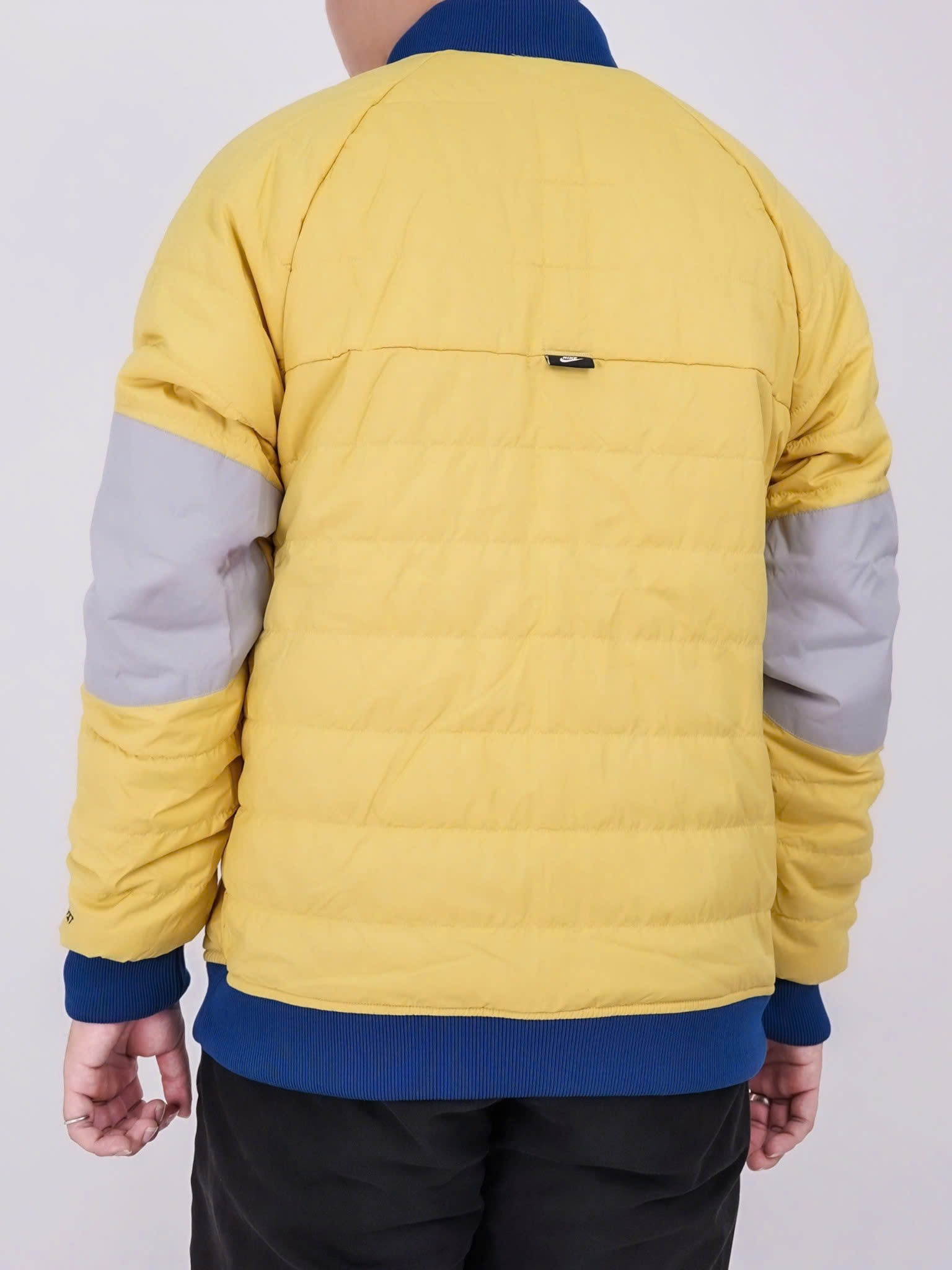 Các chi tiết gân trên cổ áo, cổ tay áo và viền áo giúp hoàn thiện vẻ ngoài của áo bomber ở cả hai bên.