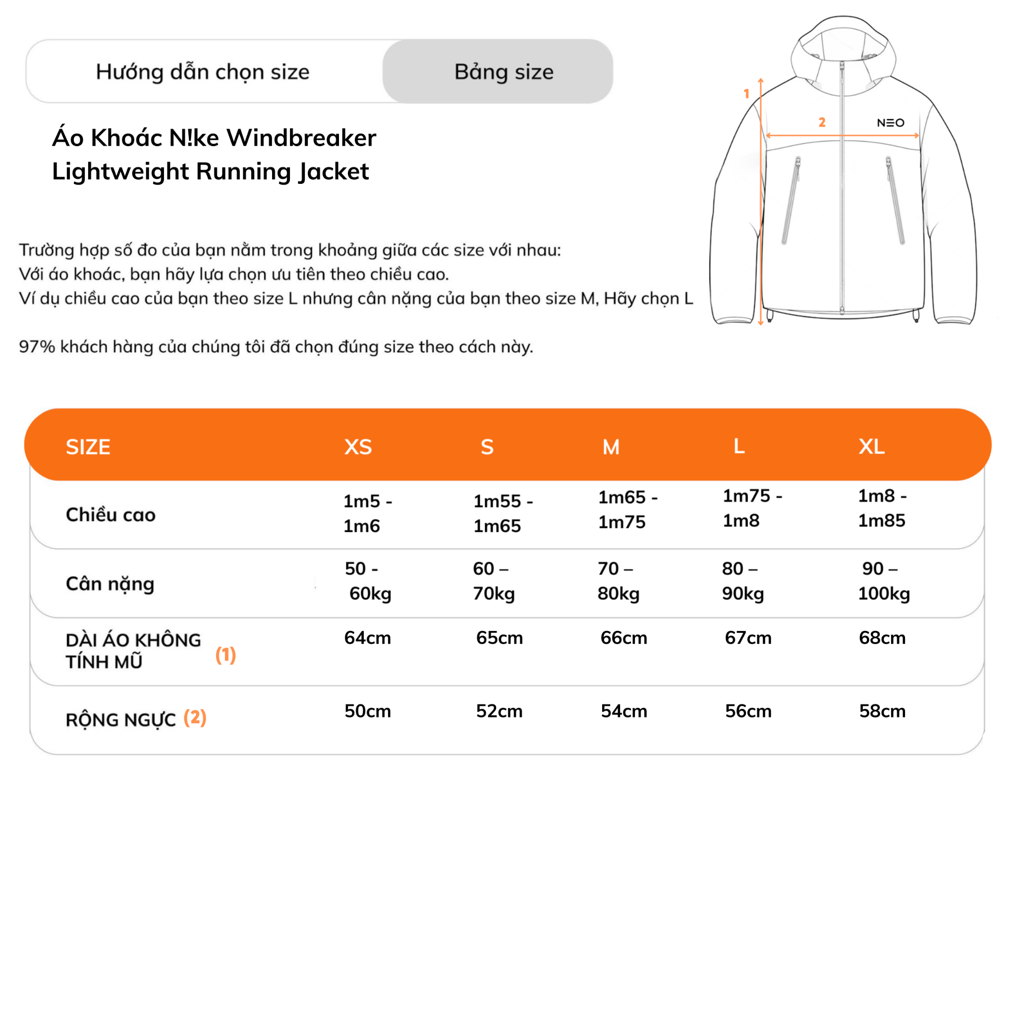 – Size XS: Cân nặng: 45 – 60kg