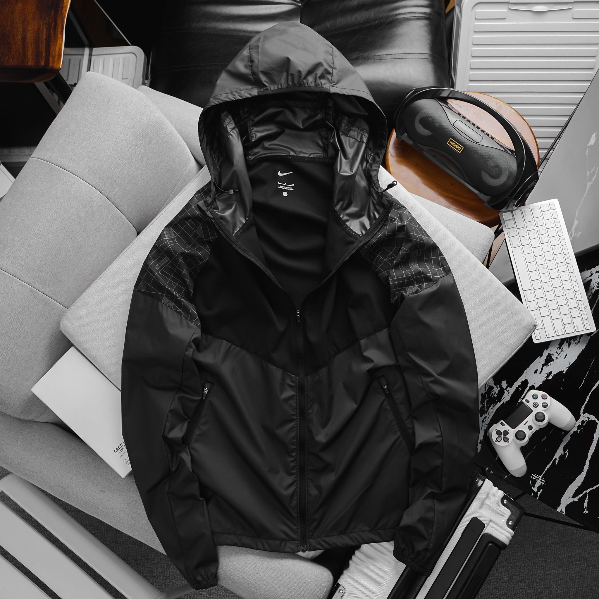 - Áo sở hữu mũ trùm tiện lợi có dây rút điều chỉnh mũ , logo phản quang được in chắc chắn và bền bỉ.
