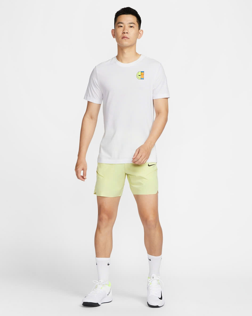 - Chất liệu vải Polyester co giãn 4 chiều, có khả năng đàn hồi linh hoạt theo từng cú vung vợt